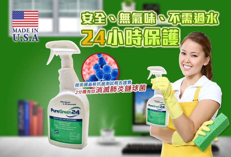 ● PureGreen24 主要成份是SDC (EPA註冊為Axen30),安全有效