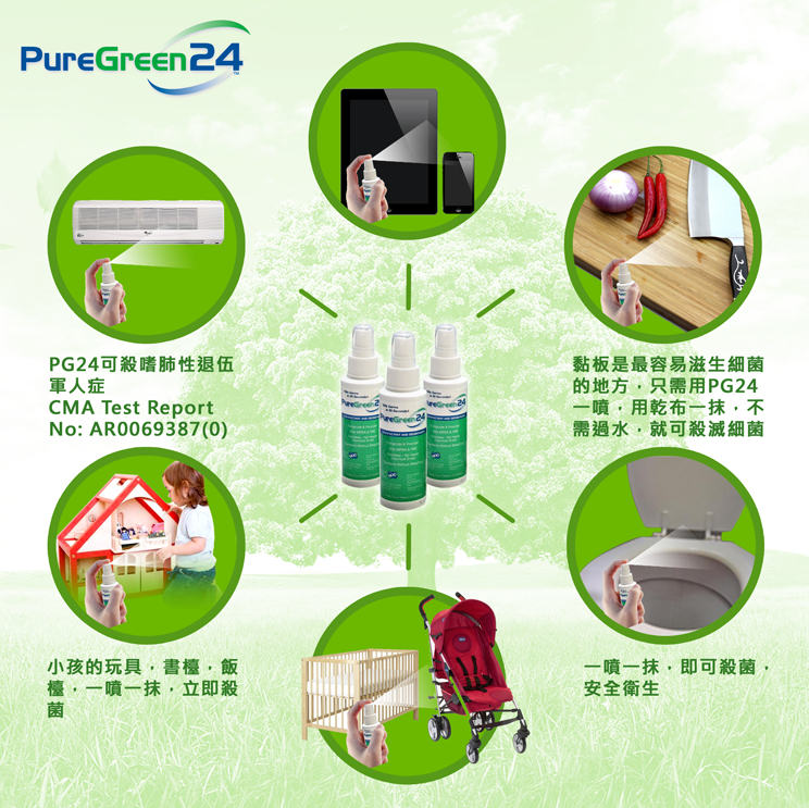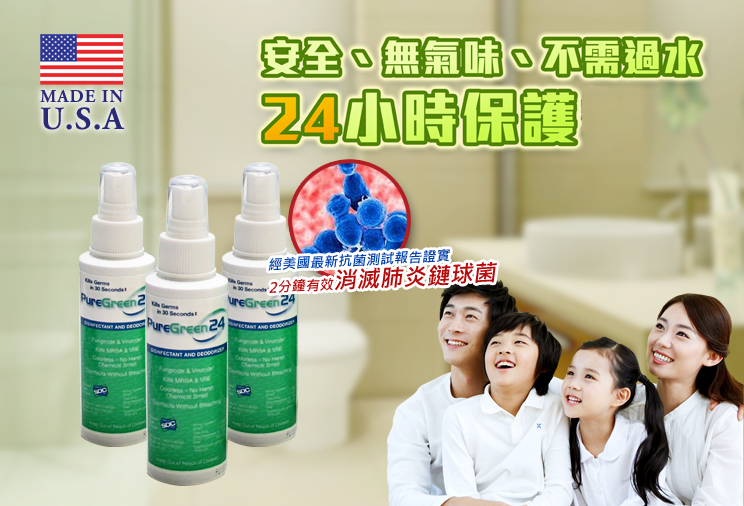 ● PureGreen24 主要成份是SDC (EPA註冊為Axen30),安全有效